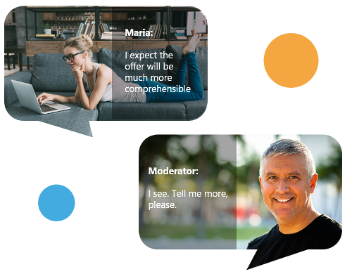 Invite your respondents to discuss in video rooms or text-based chat rooms. Browser-based, no need to install anything.