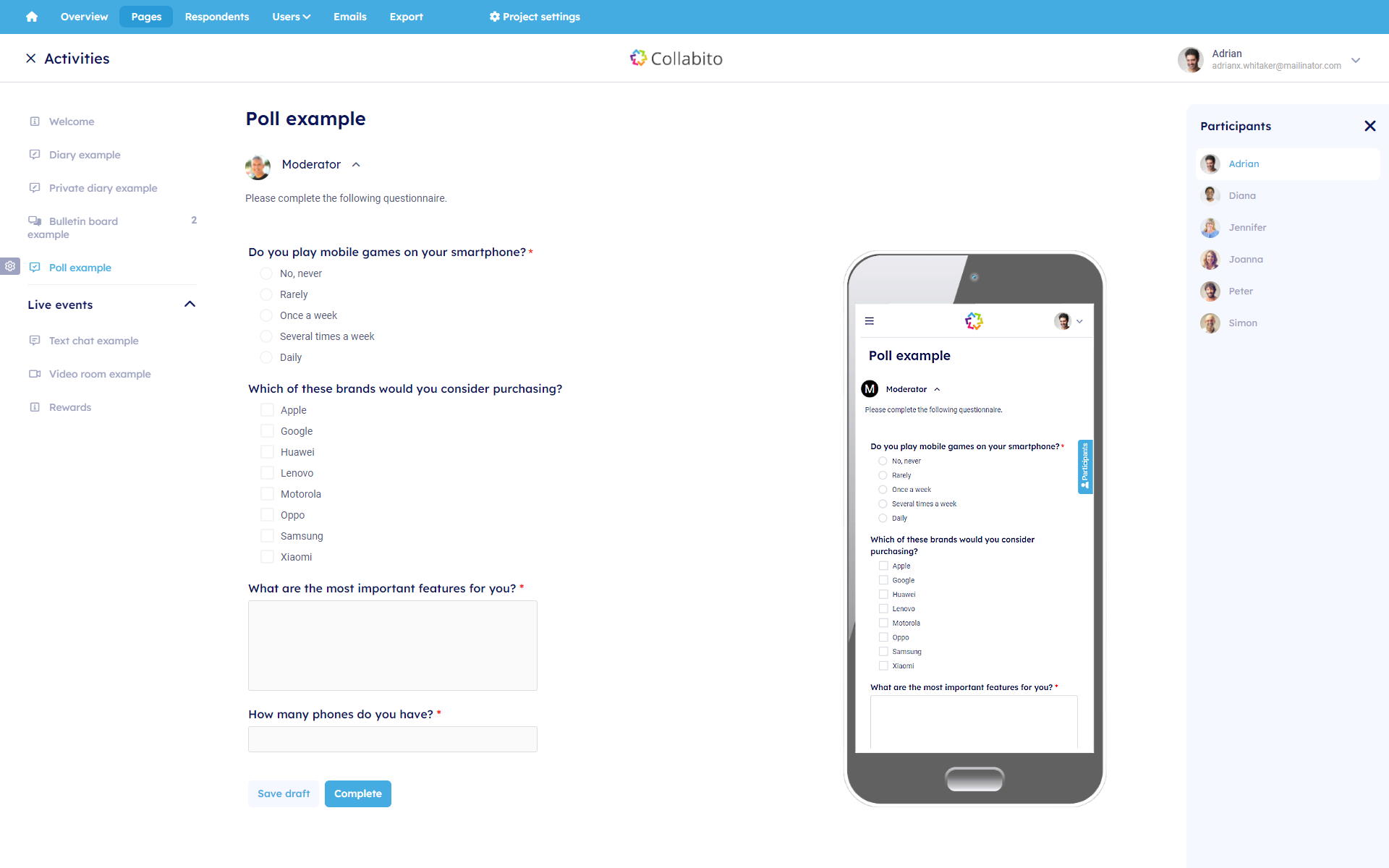 Building your qualitative online research project has never been so easy, the setup usually takes only a few minutes.