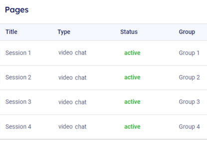 For example, when a respondent from Group 2 enters the project, he will automatically be redirected to Session 2. You donāt need to activate and deactivate respondents as in the first approach with one page for all sessions. Clearing whiteboard and text chat from the previous session is also not necessary because everything will be new and empty in separate video chat rooms.